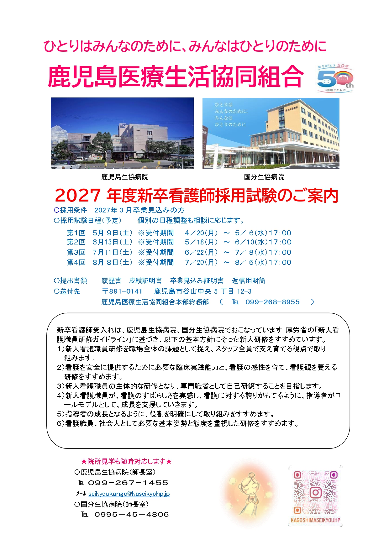 当院では、2027年3月に卒業予定の看護学生を対象に採用試験を行います。